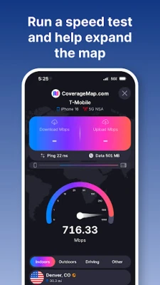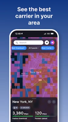 • Rich detail: tap any square to see download speeds, upload speeds, and latency for all carriers in that area