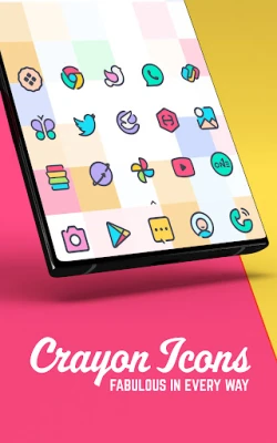 Complement your mobile screen with exclusive Crayon Icons with cartoon theme and beautiful pastel colors. Each icon is a real masterpiece and designed in order to create a perfect and pure Unique Experience. which makes for a stunningly-different look in the digital age.