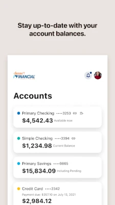 New features include: • Account Dashboard • Pay Anyone • Enhanced Bill Pay Experience • Budget Goals • Balance Peek • Secure Messaging • Register via mobile app