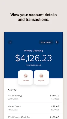 Additional standard features include: • Quick Access Login (Touch ID or PIN) • Improved mobile deposit experience • Transfer funds • Expanded Account Alerts • Improved Branch and ATM Finder