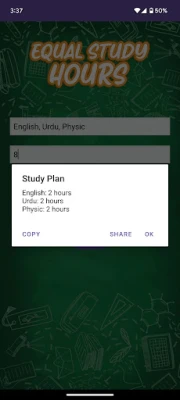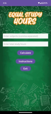 Equal Study Hours is a simple and smart tool that helps you divide your total study time equally among all your subjects. Just enter your subjects and total hours, and the app instantly calculates the time you should spend on each. Stay organized, balanced, and make the most of your study sessions!