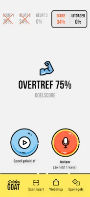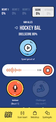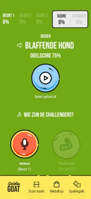 Golden GOAT is een spel waarbij de spelers geluiden moeten nadoen verdeeld over 4 verschillende categorieën. Dat zijn: