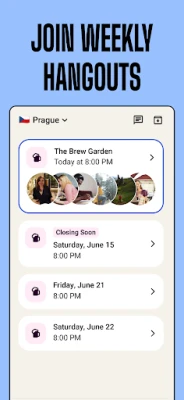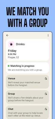 Group matching, curated hangouts, and in-app coordination.