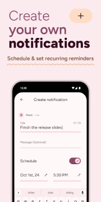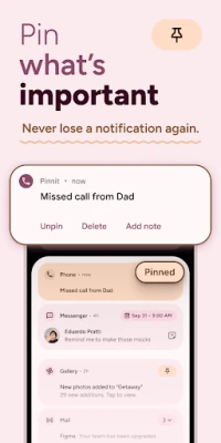 * Create and pin your own notifications * Manage your notifications with a history log, search & filtering options * Schedule notifications for reminders * Add notes to third-party notifications * Customize Pinnit's palette on the fly * Support for light, dark, and auto themes * Support for contrast themes (Android 14+)