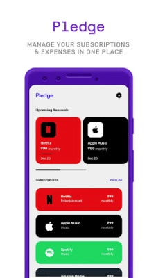 Pledge is a subscription manager which can help you to manage and track your subscriptions. It has a prebuilt list comprising popular services like Netflix, Spotify, Apple Music and more.